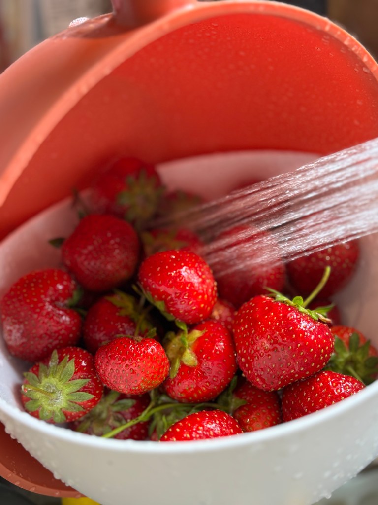 We spend a good hour cleaning every strawberry through a whole process, but it is definitely worth it. We use thieves veggie soak to clean them off.