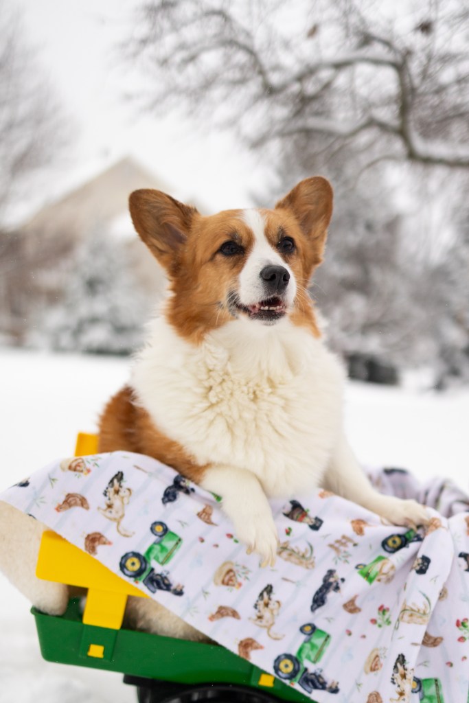Our Pembroke Welsh Corgi is a barker, and she is just generally a loud dog. She was not super fond of my husband when we first moved in together, so I was very concerned about her around a baby. However, she loved him right away. He likes to tell everyone that Lorelai is his dog. They are the best of friends, and she is old and grouchy now. But she is so patient with him.