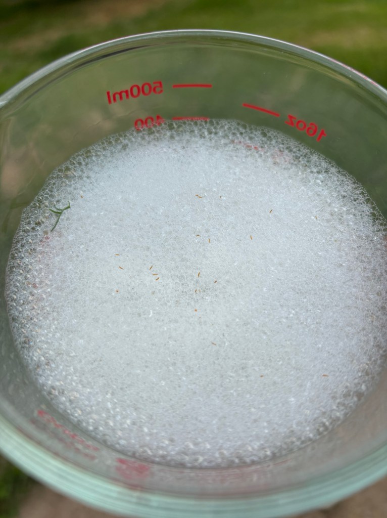 Something pretty gross that I learned about growing chamomile is that thrips, a very tiny bug, loves chamomile. It took a while to figure out the best way to clean the bugs off of the flowers. I fill a jar with water, and occasionally, I use a small amount of thieves fruit & veggie cleaner. I allow the chamomile to sit in the water in the covered jar, for about an hour. Then I scoop the flowers out of the top of the jar. I put the flowers into the salad spinner and rinse them very well then I spin them just enough to dry them but not ruin the flowers. This helped remove any additional bugs. I flush the water in the jar down the toilet because bugs gross me out a lot.