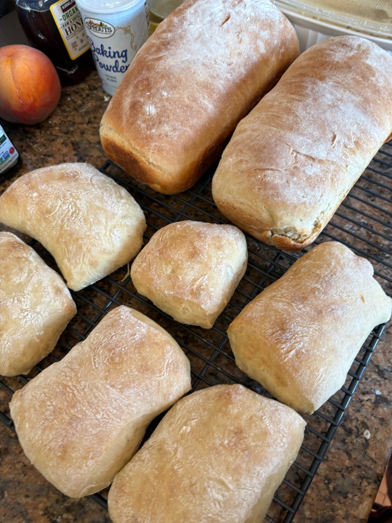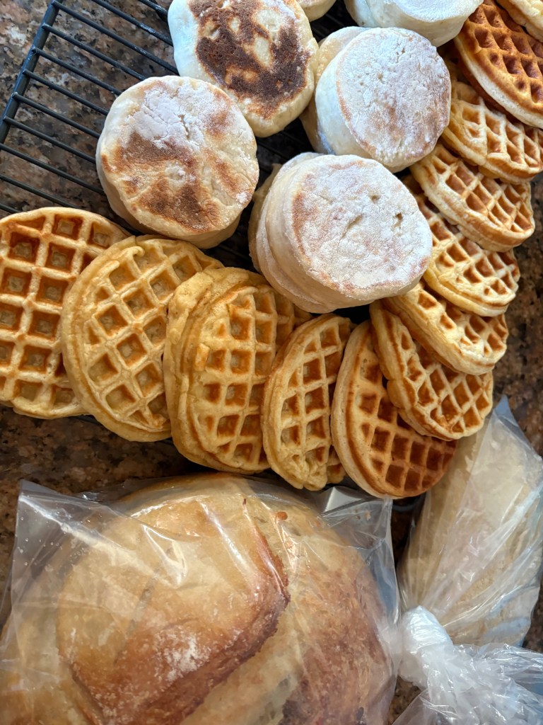 I make almost all of our bread products, which includes, ciabatta, white bread, bagels, english muffins, waffles, sourdough bread, and pretzels.