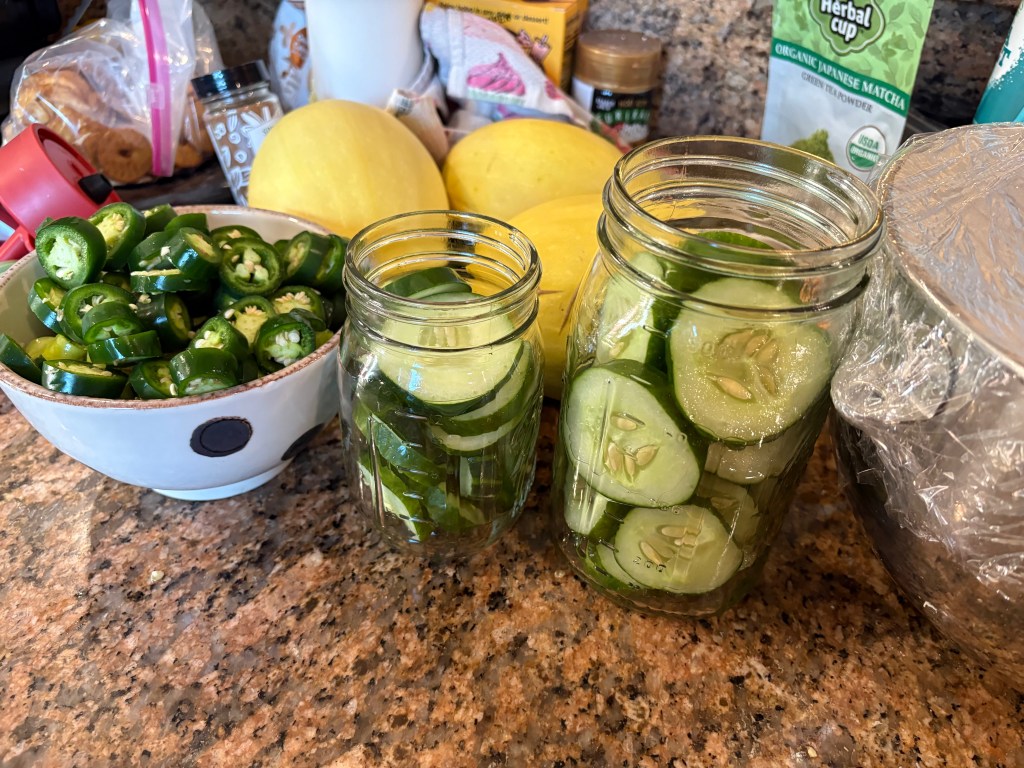 I also use a lot of produce from our garden which currently includes tomatoes, squashes, pumpkins, cucumbers, and peppers.